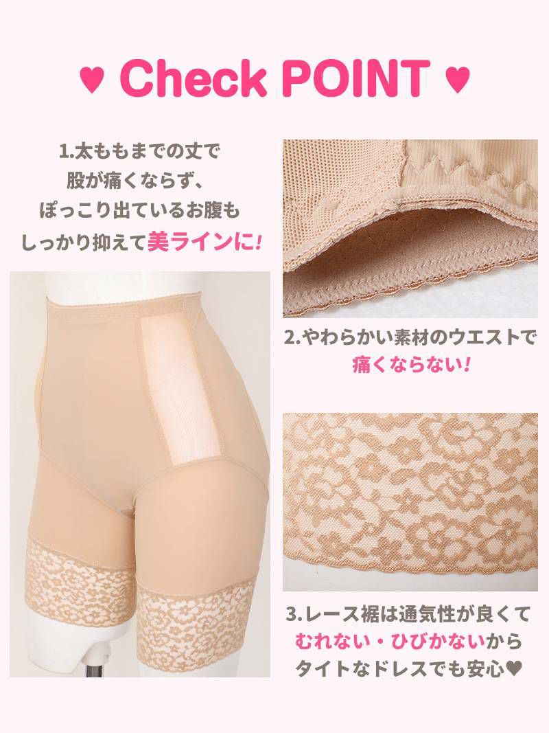 超爽快!ストレスフリーにダイエット! ロング丈裾レースヒップアップキャバガードル【Ryuyu】(S/M/L)(ベージュ)