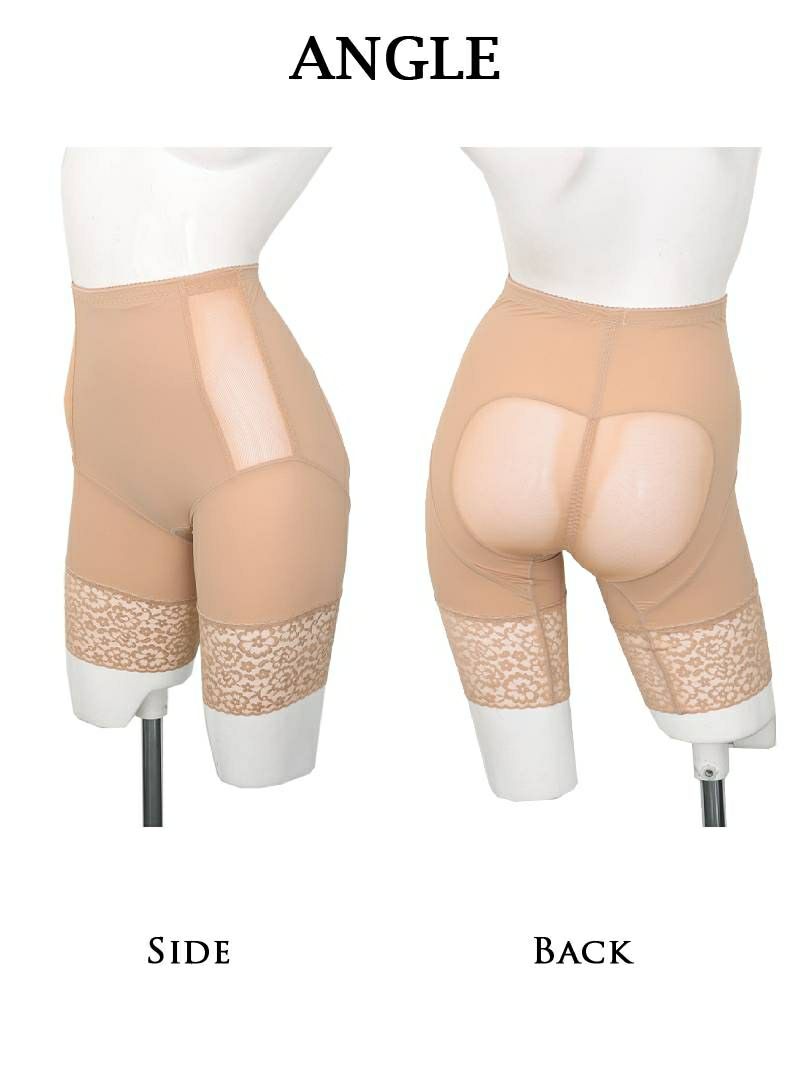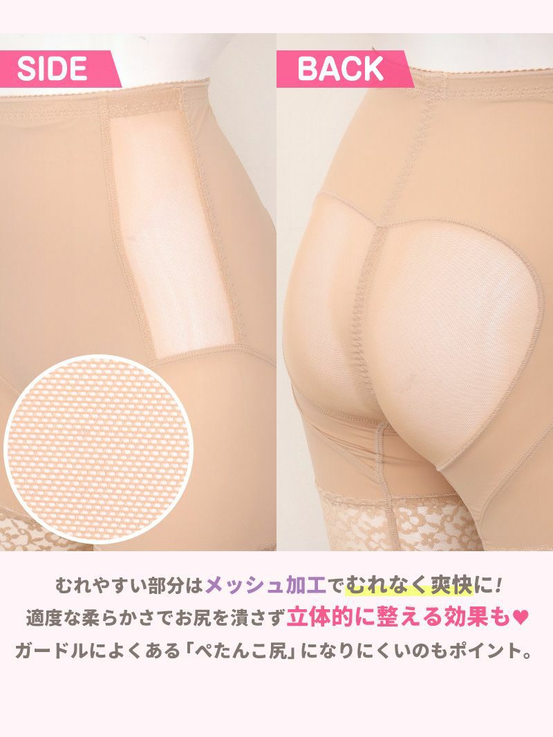 むれやすい部分はメッシュ加工でむれにくく爽快に着用できる補正下着はお尻をつぶさず立体的に整える効果も。
