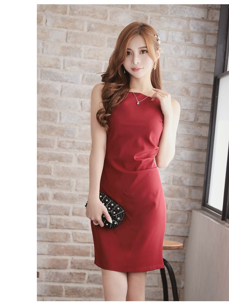 美ラインを叶える大人ドレス ノースリーブデザインギャザータイトキャバドレス【Ryuyu】(S/M/L/XL(2L))(ブラック/レッド/ホワイト/ブルー)