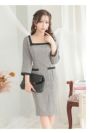 グレー五分袖タイト膝丈キャバワンピース りせり 着用 キャバドレス【RyuyuChick】