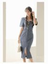 ハイウエストデニムミディ丈韓国ワンピース KANO 着用 キャバドレス【DAYS PIECE】
