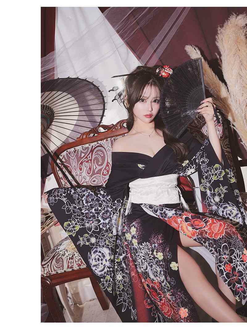 6. 【4月入荷予定】コスプレ 艶やかロング花魁コスプレ着物ドレス【Ryuyu】(フリーサイズ)(ブラック)