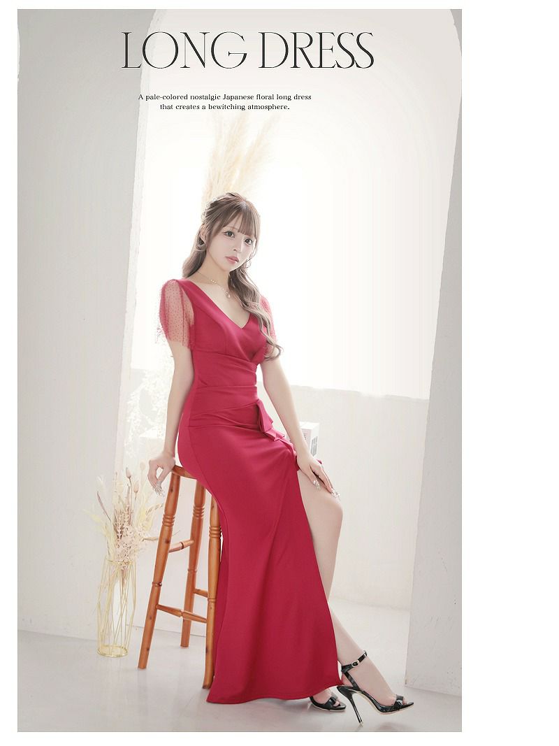 5. 先行予約割¥4980→¥4731!※一部予約販売※フリルキラ袖深めスリットロングドレス あいさ キャバドレス【RyuyuChick】(S/M/L/XL(2L)/XXL(3L))(ブラック/ワイン)