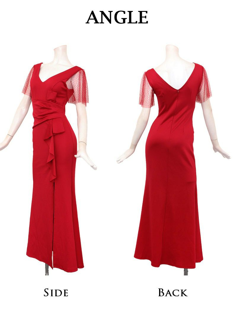 4. 先行予約割¥4980→¥4731!※一部予約販売※フリルキラ袖深めスリットロングドレス あいさ キャバドレス【RyuyuChick】(S/M/L/XL(2L)/XXL(3L))(ブラック/ワイン)