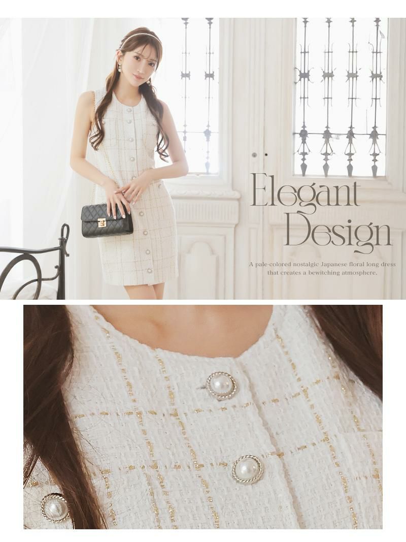 気品溢れるツイード素材!パールボタンが華やかなノースリーブミニワンピース【Ryuyu】