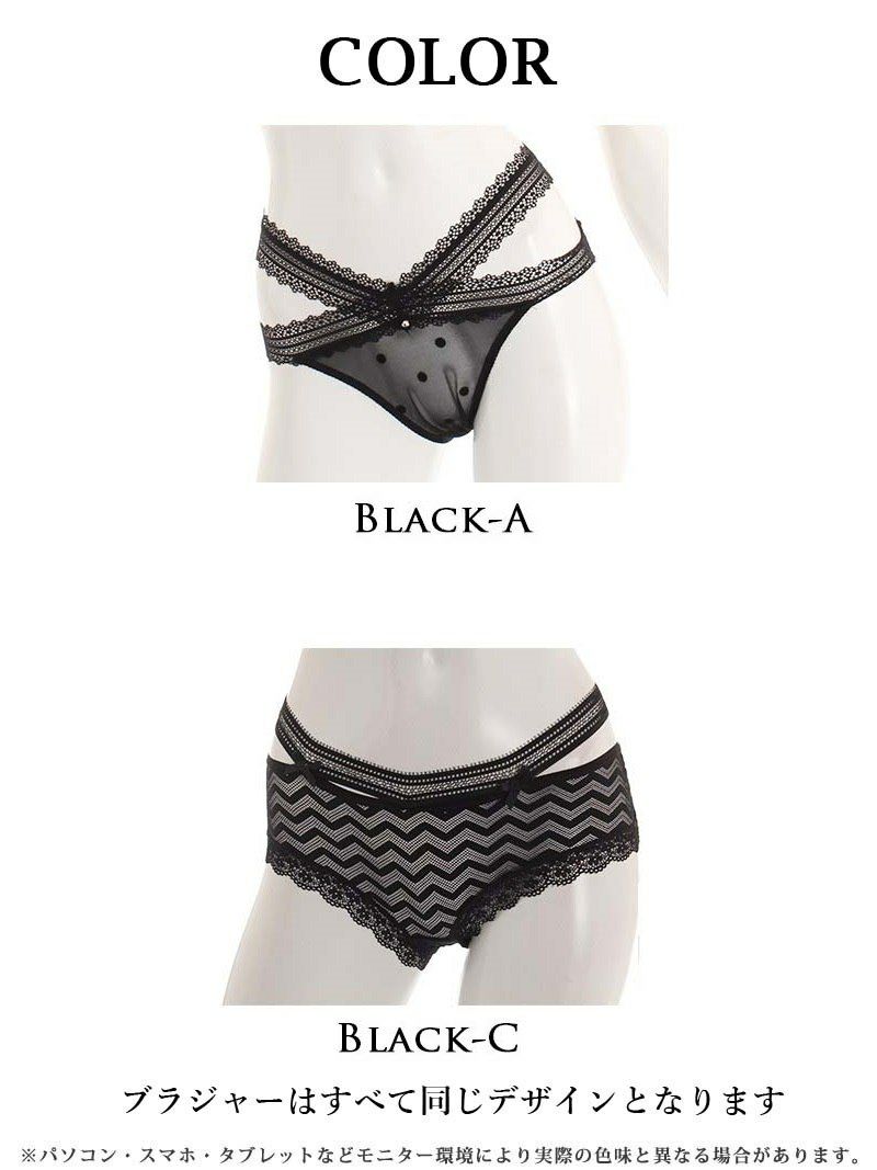 4. 【訳ありアウトレット】ショーツが選べる 黒SEXYブラ&ショーツセット【Rwear】シースルーレディース下着2点セット(S(M))(ブラックA/ブラックC)