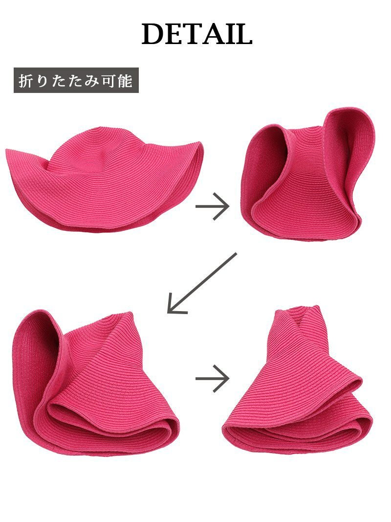 【Ryuyu】の訳ありアウトレットにて、たためるシンプルつば広めレディースストローハットが特別価格。