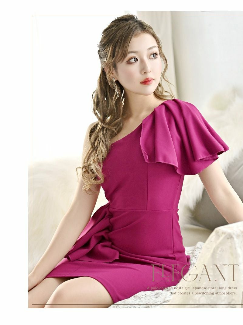 魅力的なアシンメトリーのデザインが特徴のミニドレス。大人セクシーなスタイルで、キャバクラやパーティーにぴったりです!