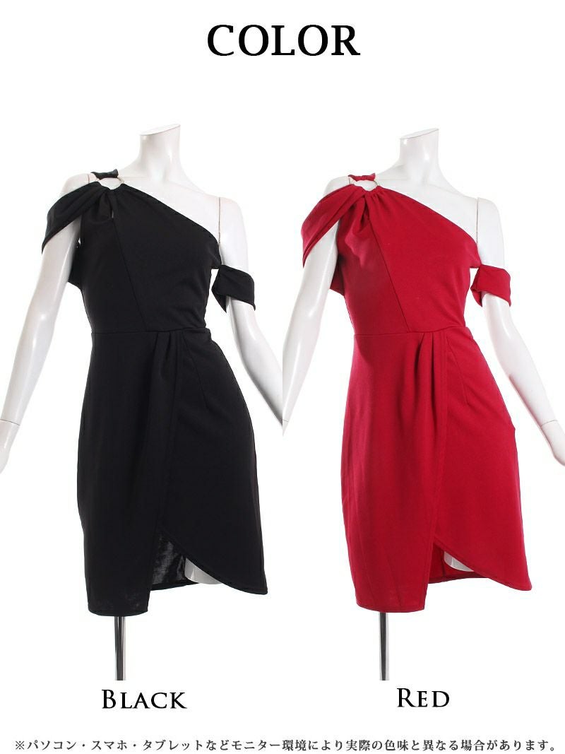 訳ありワンショルダー 【訳ありアウトレット】肩魅せセクシータイト韓国キャバワンピース【DAYS PIECE】(M/L)(ブラック/レッド) ptpl