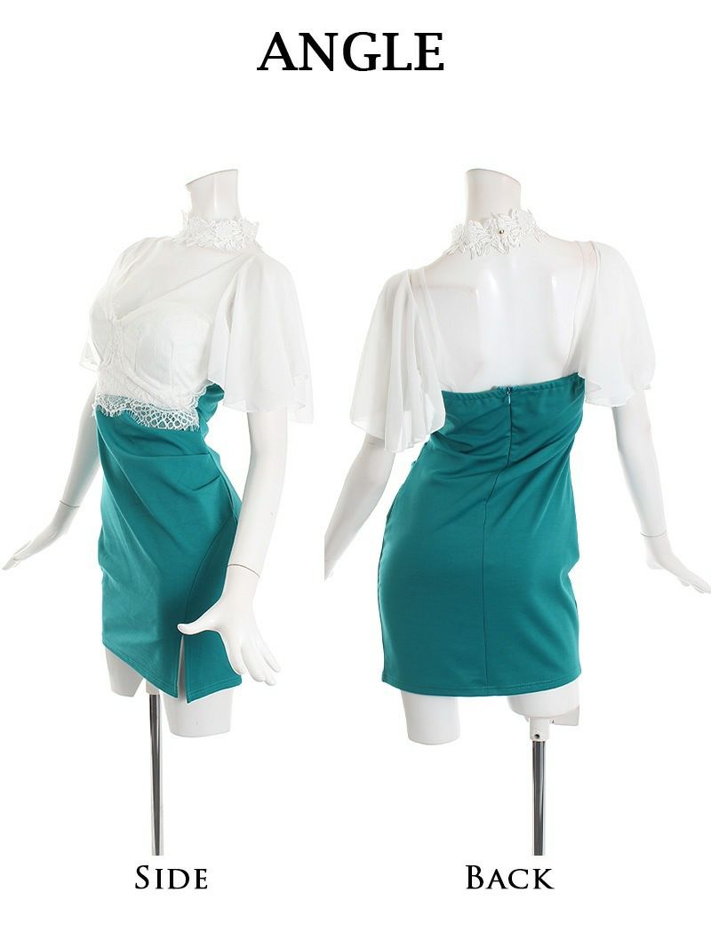 訳あり大人フォーマル 【訳ありアウトレット】ペプラムスリット入りバイカラーミニ丈キャバスーツ【Ryuyu】(S/M/L/XL)(ブラック/ホワイト/ワイン/マスタード/ブルー/ベージュ)