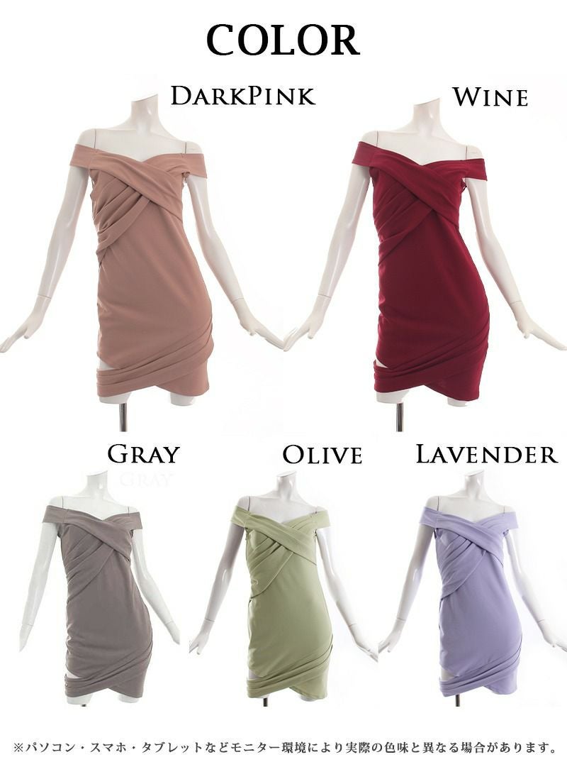 5. 谷間見せオフショルダータイトキャバドレス りおん 着用キャバクラドレス【RyuyuChick】(XS/S/M/L/XL)(グレー/ダークピンク/ワイン/ラベンダー/オリーブ)