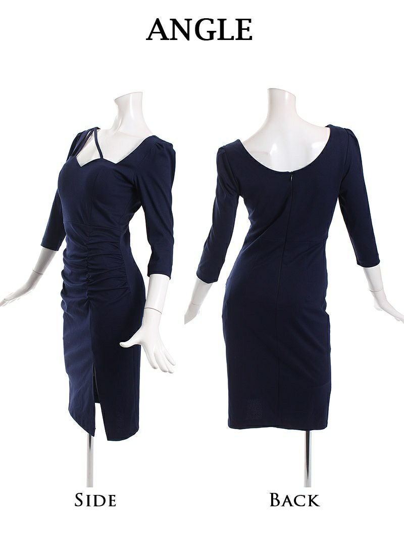 4. 美脚魅せセクシースリット膝丈KANO着用韓国キャバ嬢ワンピース【DAYS PIECE】(S/M/L/XL(2L)/XXL(3L))(ネイビー) ptpl
