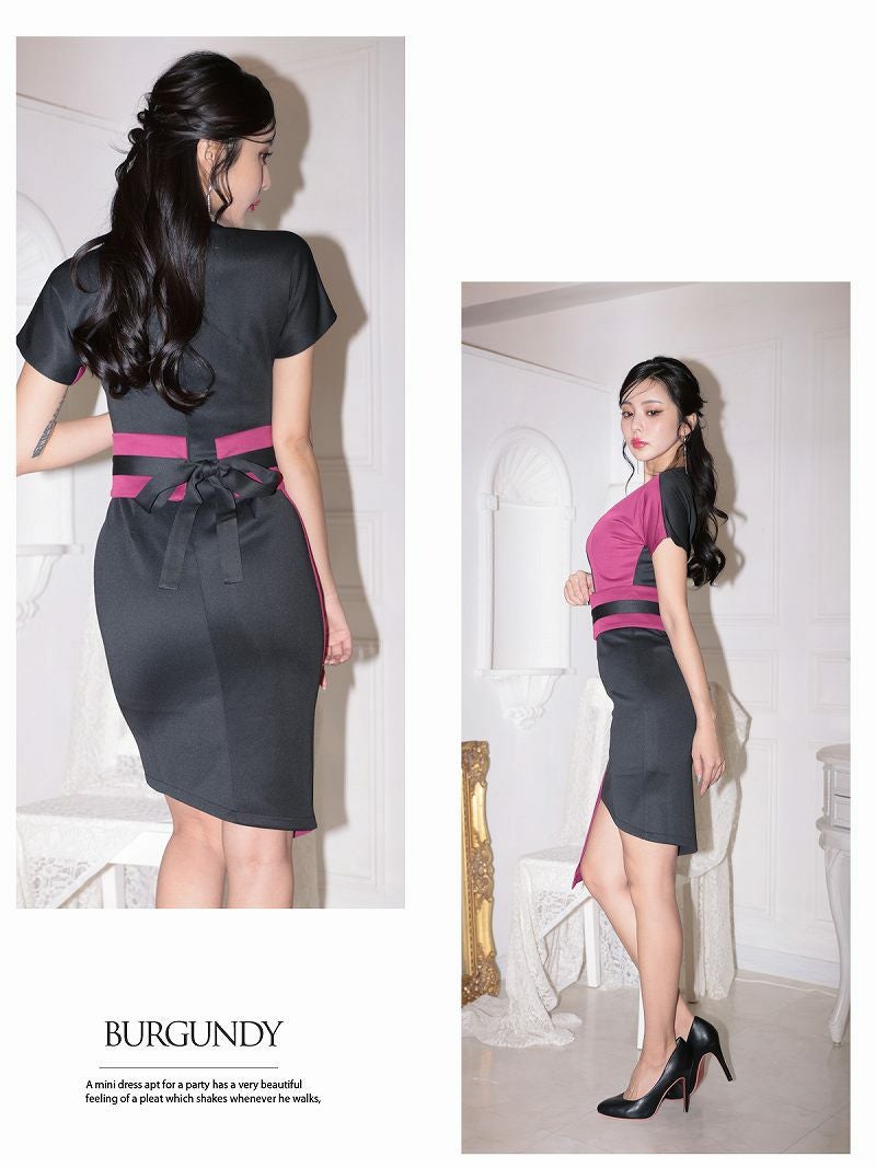 バイカラーウエストライン袖付きキャバワンピース【DAYS PIECE】