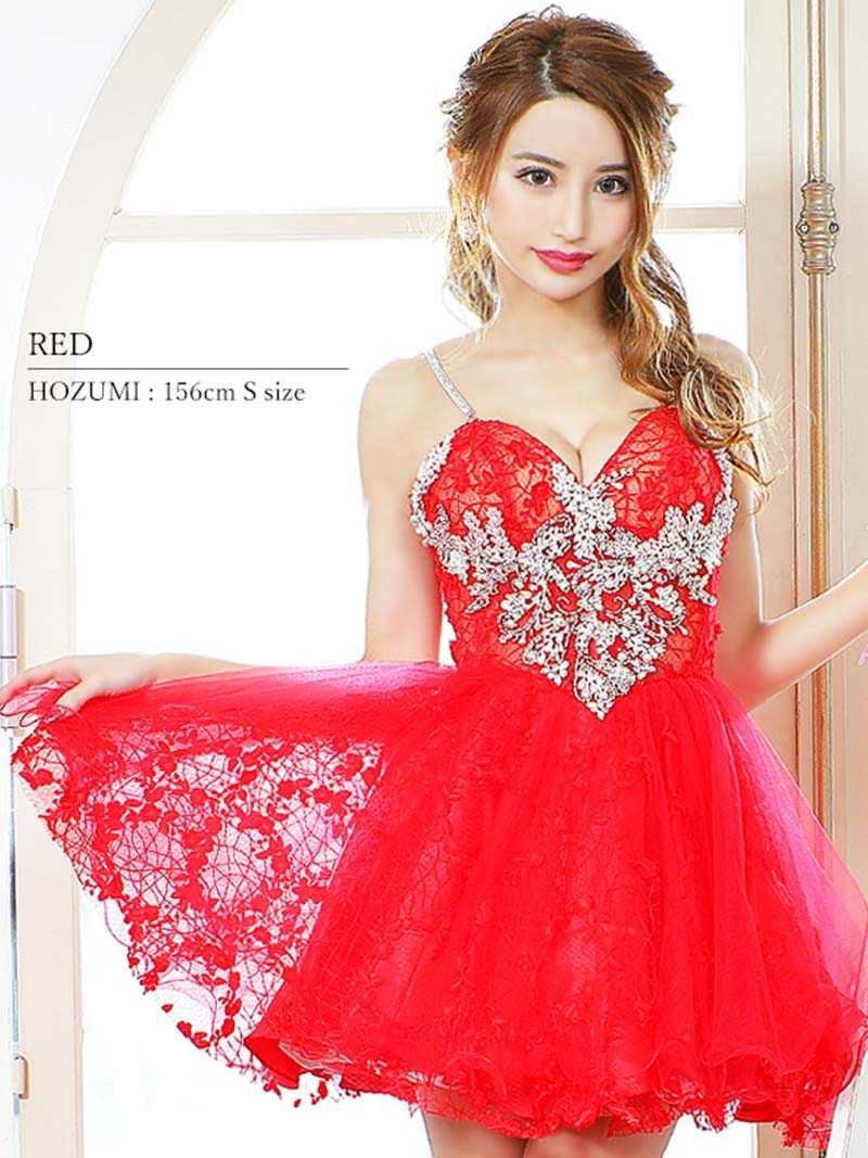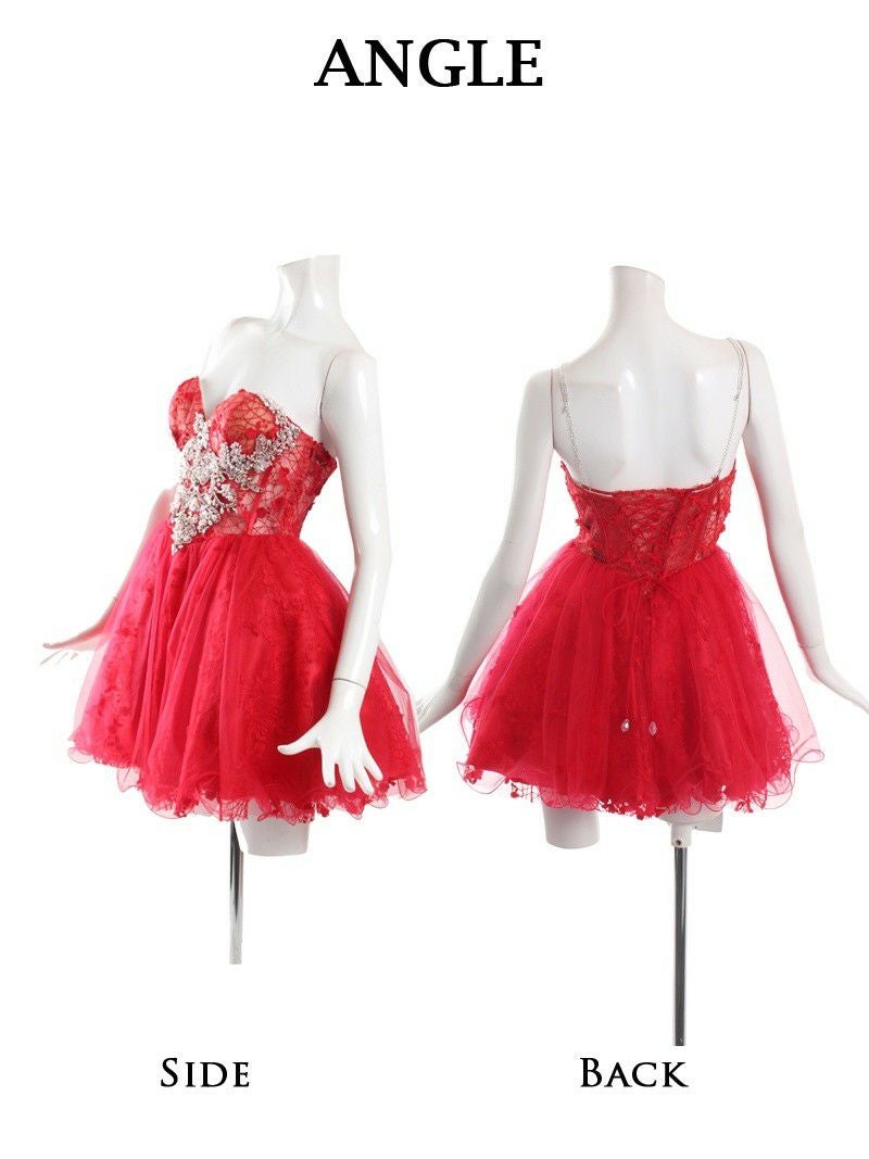 人気のハートカットドレスでお姫さま気分♪ 【Angel R/エンジェルアール】フレアデザイン刺繍チュールフレアミニドレス(S/M)(ホワイト/レッド)