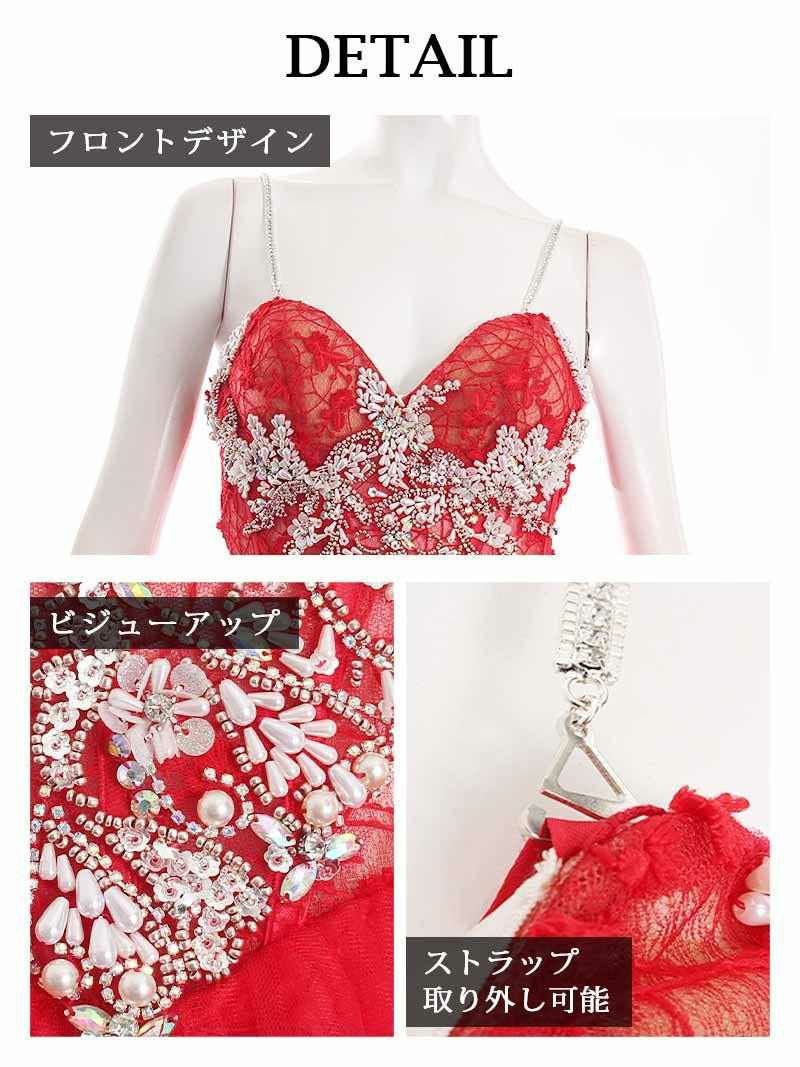 5. 【Angel R/エンジェルアール】フレアデザイン刺繍チュールフレアミニドレス(S/M)(ホワイト/レッド)