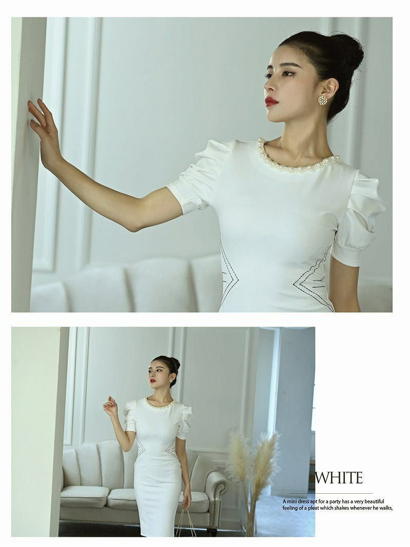4. パフスリーブ膝丈韓国キャバワンピース【DAYS PIECE】(S/M/L/XL)(ブラック/ホワイト/レッド) ptpl