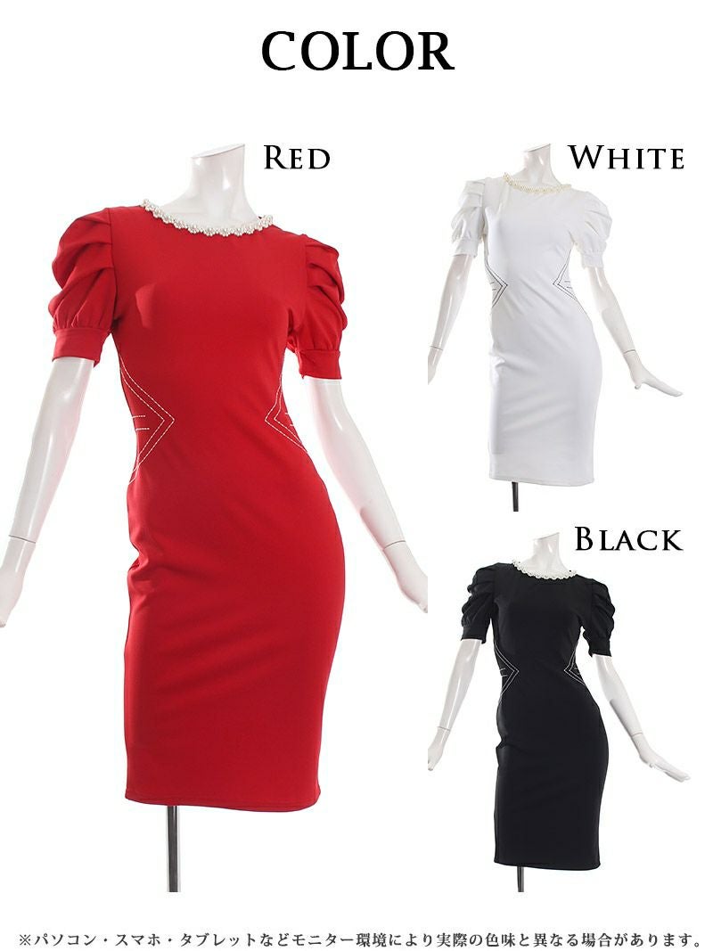 5. パフスリーブ膝丈韓国キャバワンピース【DAYS PIECE】(S/M/L/XL)(ブラック/ホワイト/レッド) ptpl