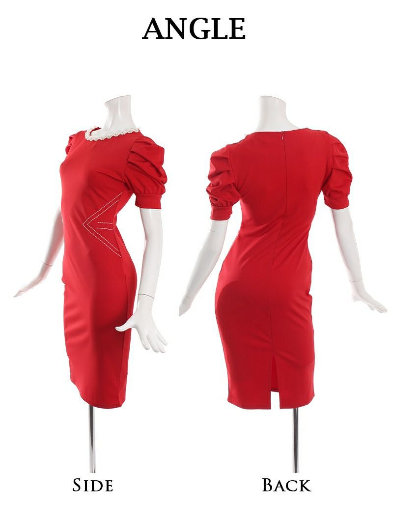 パフスリーブ膝丈キャバワンピース【DAYS PIECE】