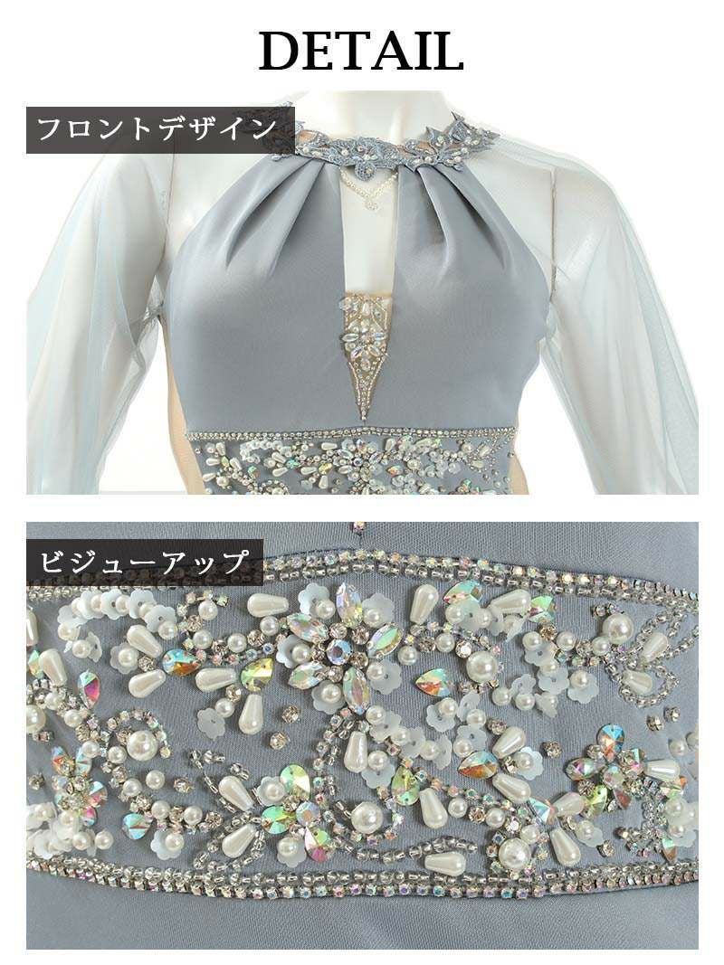 煌めくビジューが華やかに映え、キャバクラでひときわ目を引く一着です。