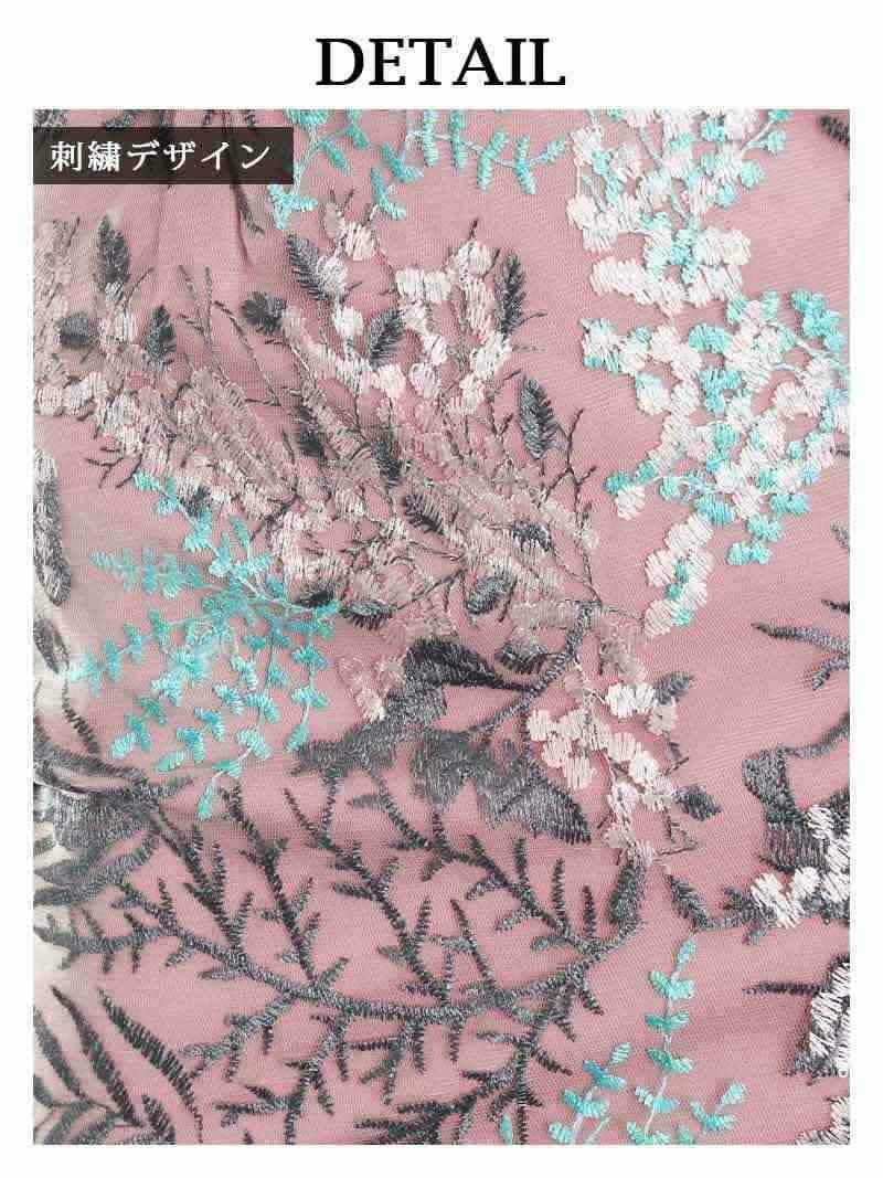5. ピンク×花柄刺繍フリルワンショルタイトドレス【Belsia】(S/M/L)(ピンク/ベージュ/グリーン)