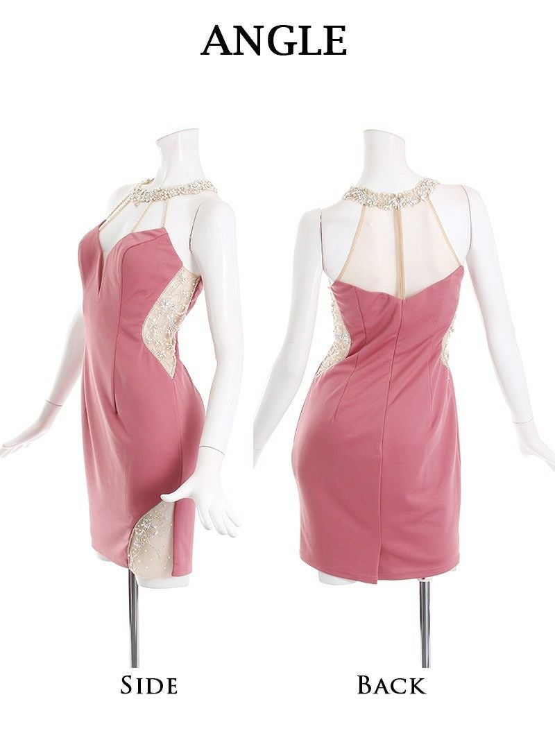 【Angel R/エンジェルアール】ホルターネックビジュータイトミニキャバドレス