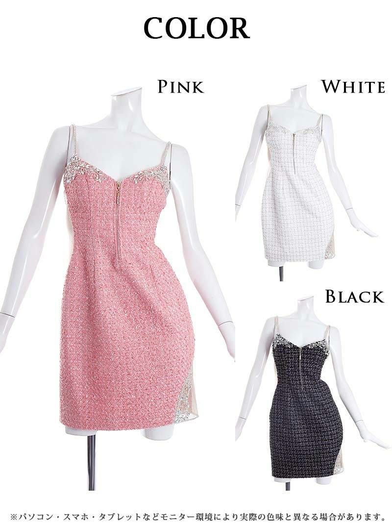 4. 【Angel R/エンジェルアール】ツイードフロントジップキャミソールタイトキャバドレス(S/M)(ピンク/ホワイト/ブラック)