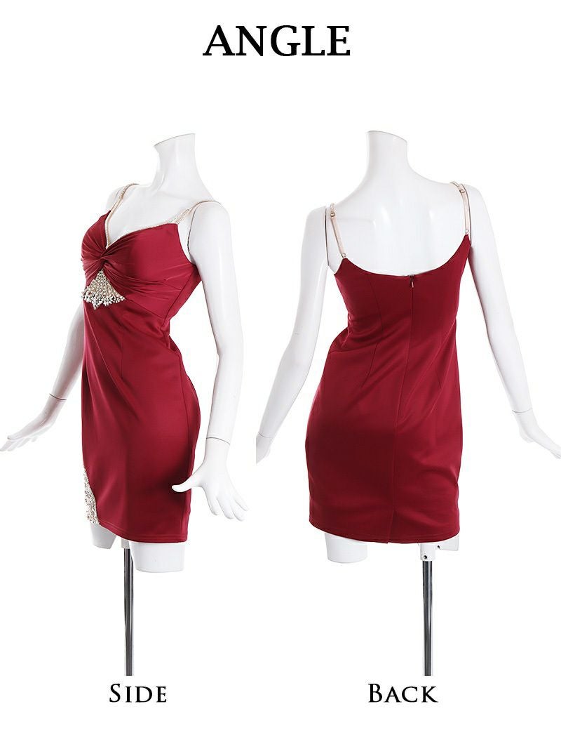 6. バストクロスギャザータイトワンカラーキャバミニドレス【Angel R/エンジェルアール】(S/M)(ワインレッド/ブルー)