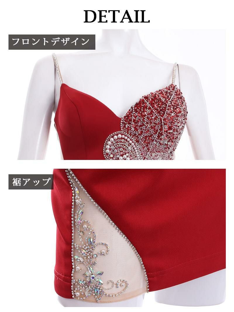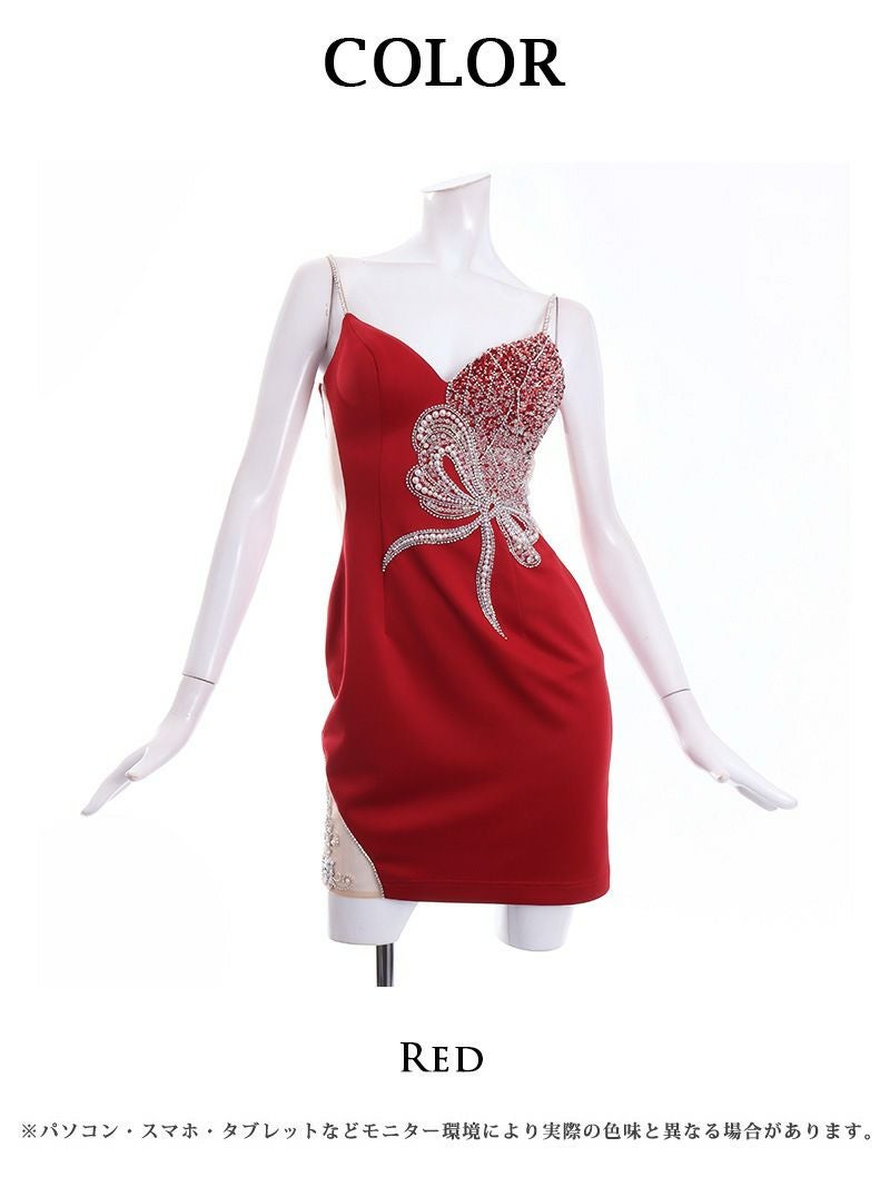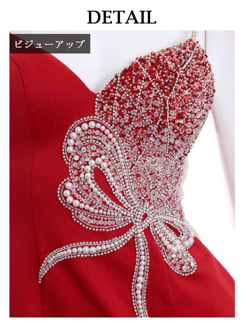 4. 【Angel R/エンジェルアール】スパンコール×パールリボンモチーフタイトキャバドレス(S/M)(レッド)