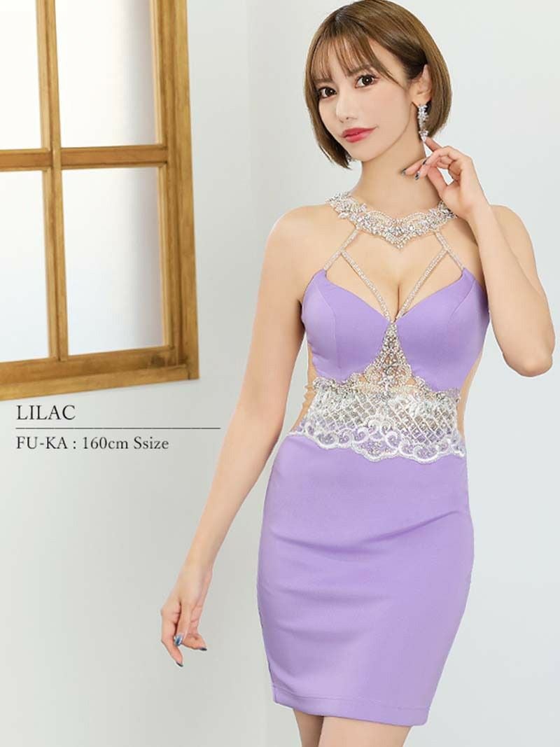 4. 【Angel R/エンジェルアール】キラキラビジューが豪華タイトキャバドレス(S/M)(ブラック/レッド/ライラック/トランキルブルー)