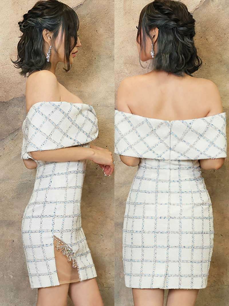 リボンモチーフオフショルツイードタイトキャバミニドレス【Angel R/エンジェルアール】