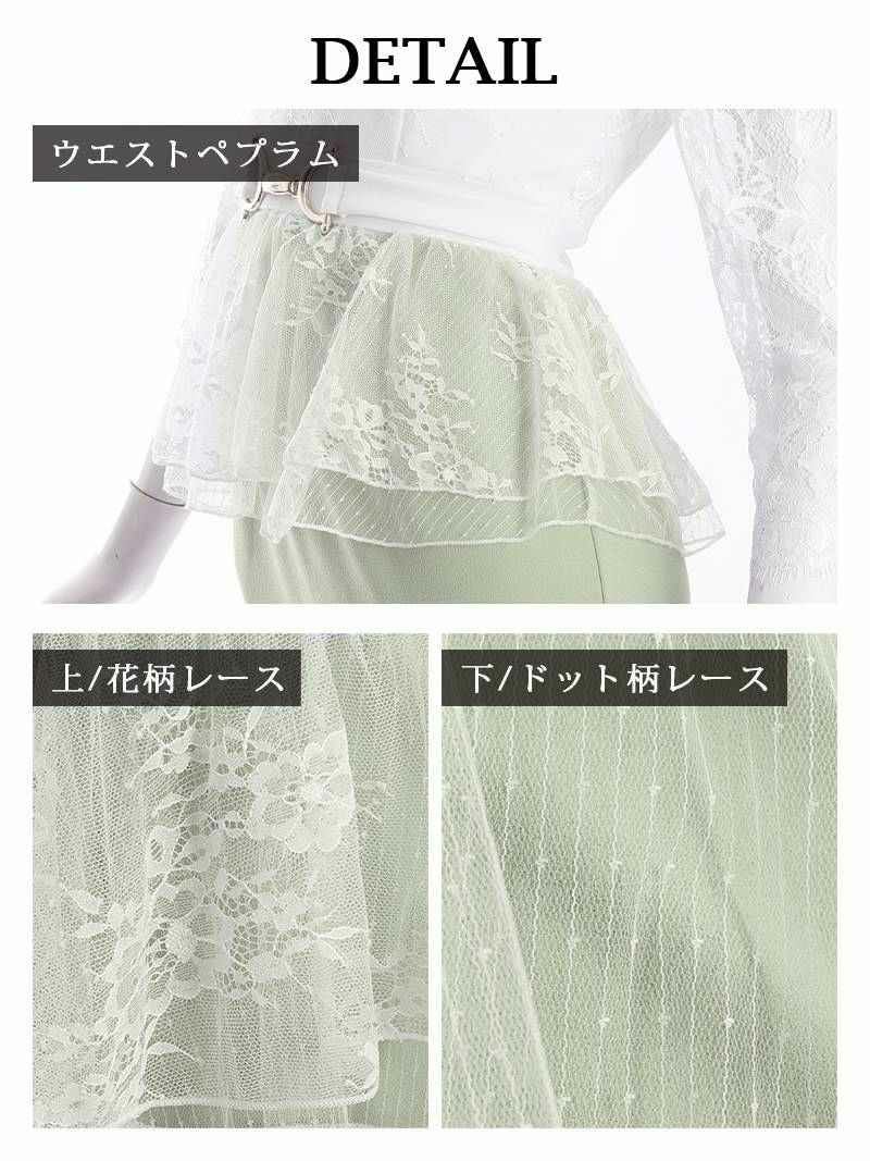 4. バイカラーレースペプラム袖付きキャバドレス ゆずは れいたぴ 着用ミニドレス【Ryuyu】(S/M/L/XL)(グリーン/ラベンダー/ピンク)