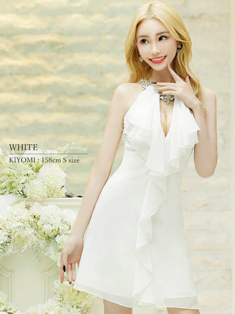 胸周りのフリルたっぷりでふんわり可愛い甘辛キャバドレス。