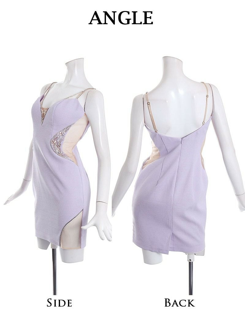 5. 【Angel R/エンジェルアール】豪華ビジューとえちえちシアーのキャバミニドレス(XS/S/M)(ブルー/アップルグリーン/ラベンダー)