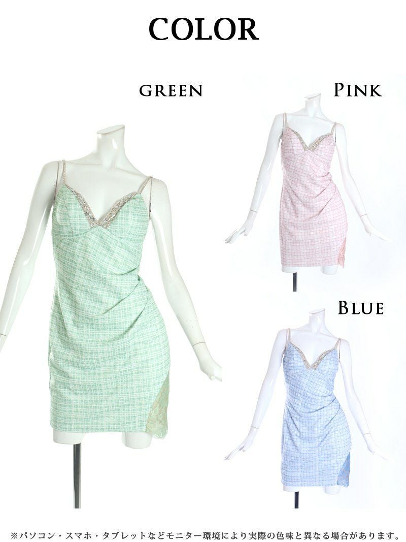4. 【Angel R/エンジェルアール】チェック柄パステルカラー胸盛りタイトキャバドレス(S/M)(ピンク/グリーン/ブルー)