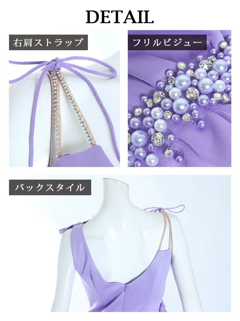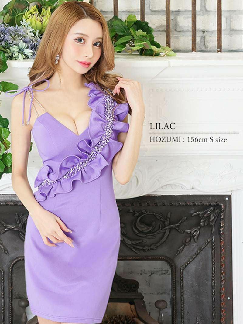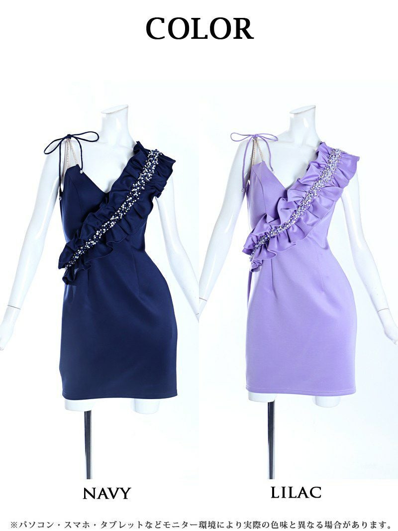 パールビジューで高見え豪華! 【Angel R/エンジェルアール】インポート風フリルデザインアシンメトリーミニドレス(S/M)(ライラック/ネイビー)