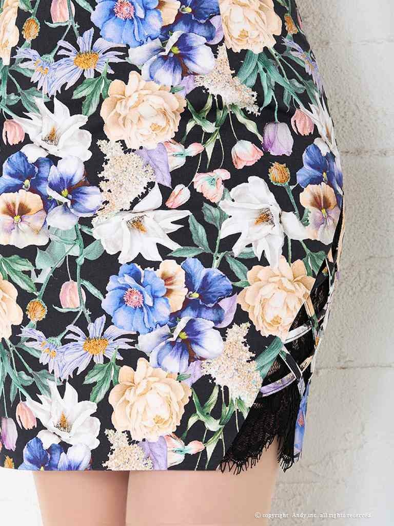 高級感漂うセクシーな一着 【ANDY/アンディ】レースペプラムドレス ITK(S/M)(ホワイトプリント/ブラックプリント)