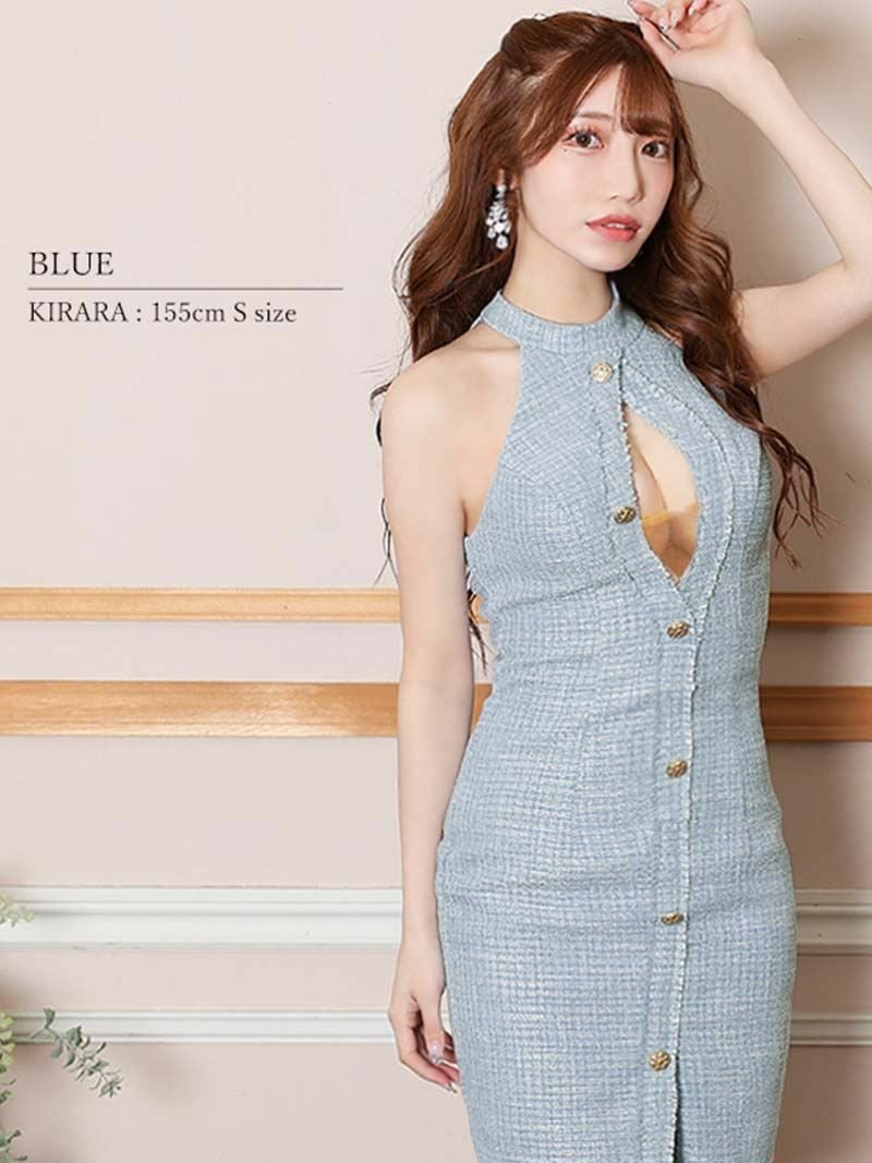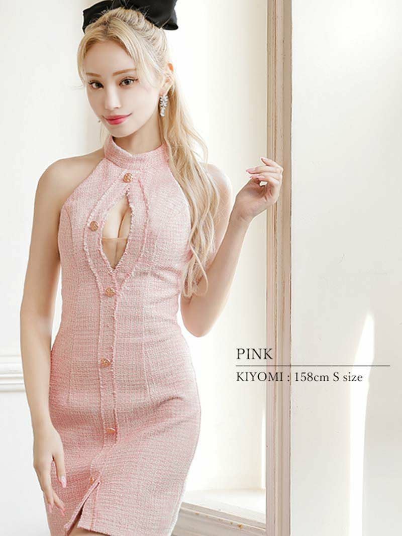 4. 【Angel R/エンジェルアール】谷間魅せエロかわカラーツイードキャバミニドレス(S/M)(ホワイト/ピンク/ブルー)