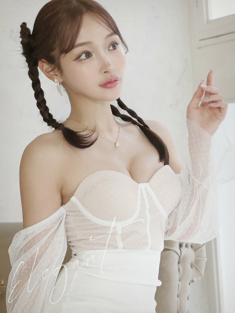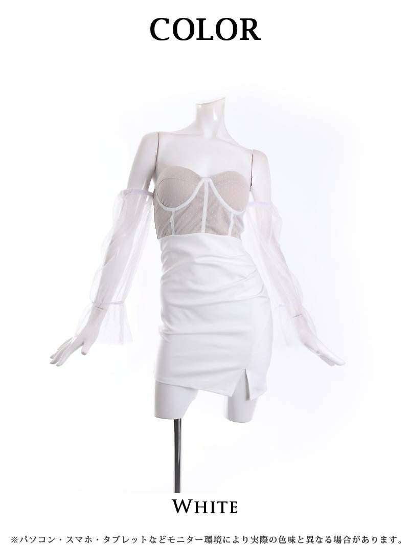 あざと可愛く男を攻める♪ ビスチェデザインオフショルダーキャバクラドレス【Ryuyu】(S/M)(ホワイト) ptpl
