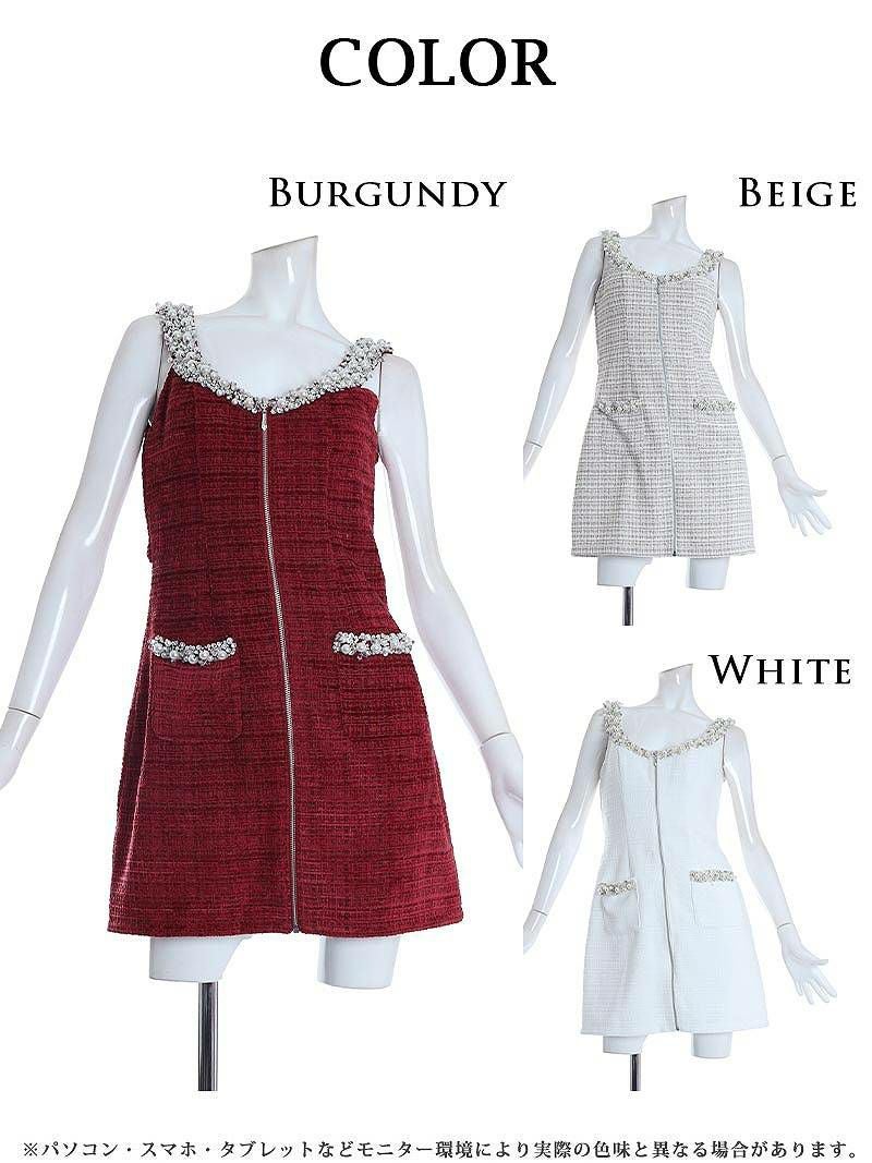 4. 【Angel R/エンジェルアール】フロントジップ背中空きsexyキャバ嬢ミニドレス(S/M)(ホワイト/ベージュ/バーガンディ)