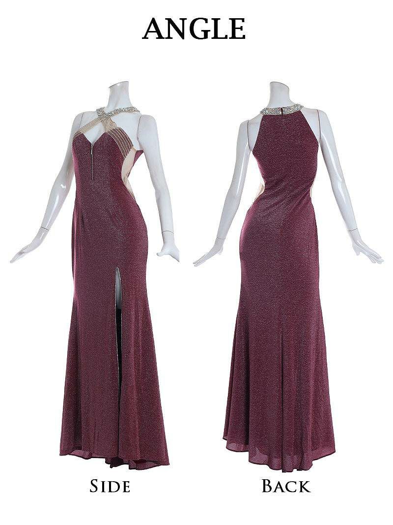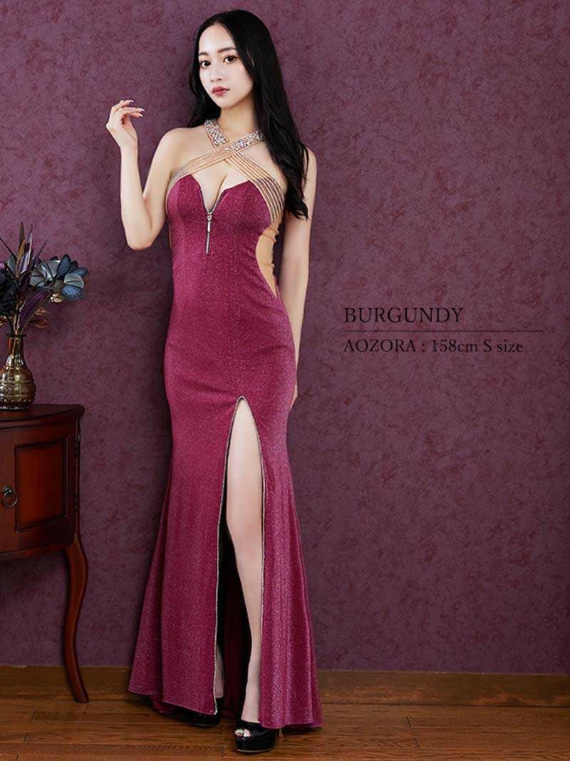 4. 【Angel R/エンジェルアール】ラメデザインフロントジップシアーロングドレス(S/M)(バーガンディ)