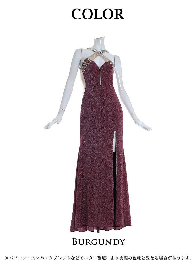 美しさを演出する赤色ロングドレス♪ 【Angel R/エンジェルアール】ラメデザインフロントジップシアーロングドレス(S/M)(バーガンディ)