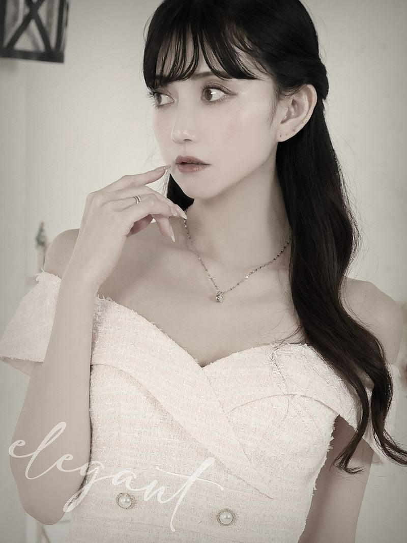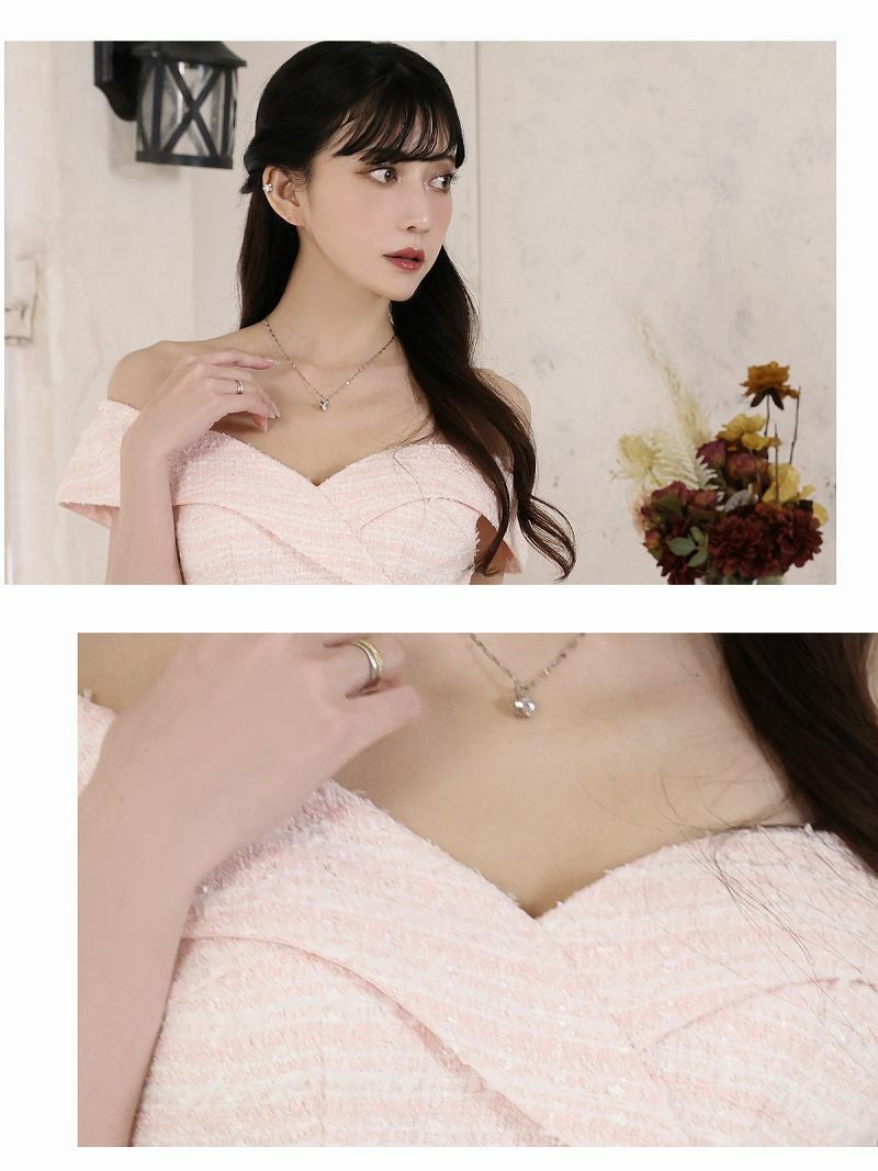 クラシカルツイードデザインタイトオフショルダーキャバドレス【Belsia】