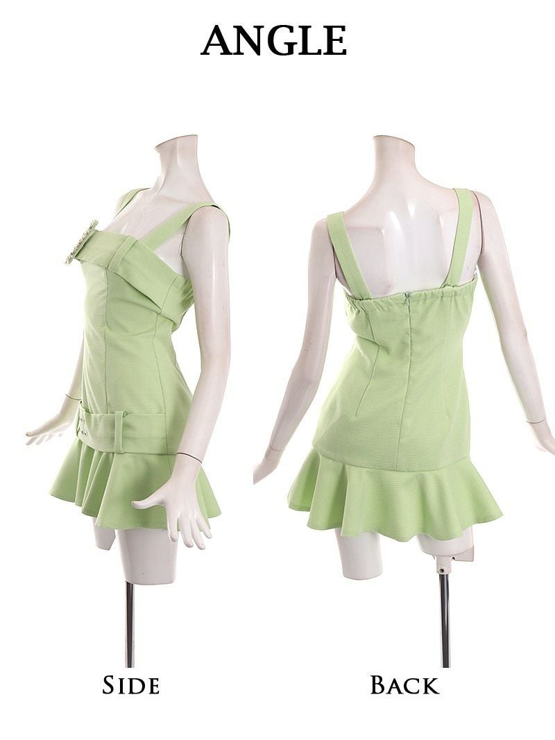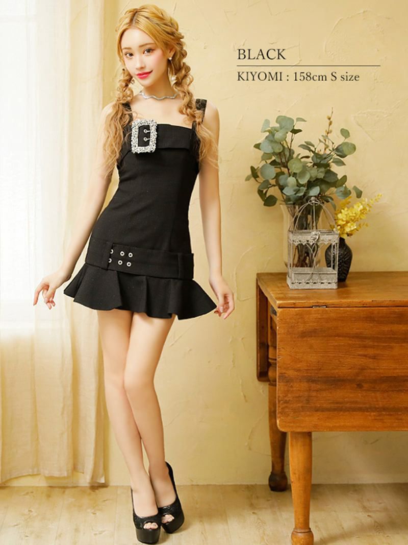 パールバックルの輝きが映えるエレガントなデザインで、キャバクラシーンでひと際目を引く一着です。
