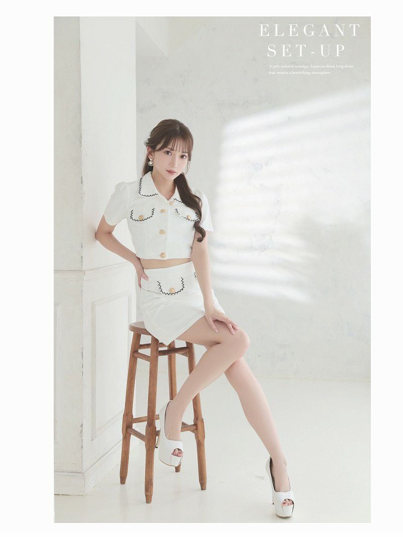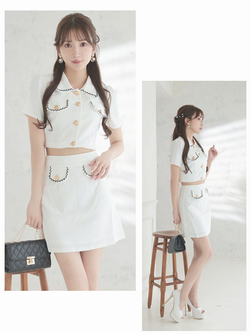 4. 韓国風クラシカル半袖セットアップドレス【Ryuyu】(S/M/L)(ブラック/ホワイト)