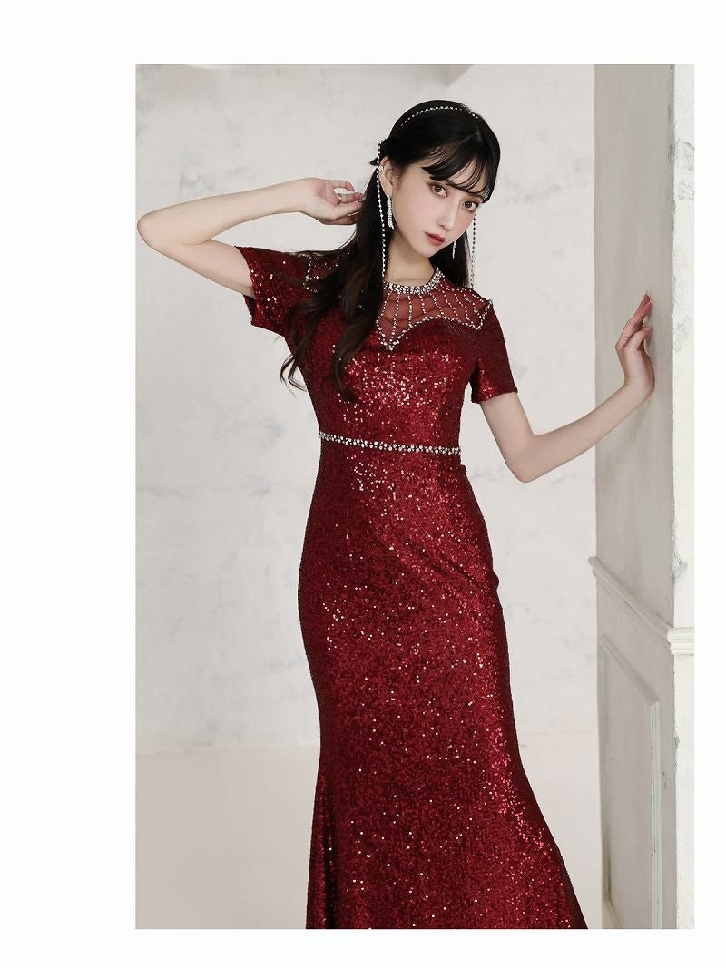 煌めく総スパンコールが、どんな場面でも主役にしてくれるキャバドレスです。