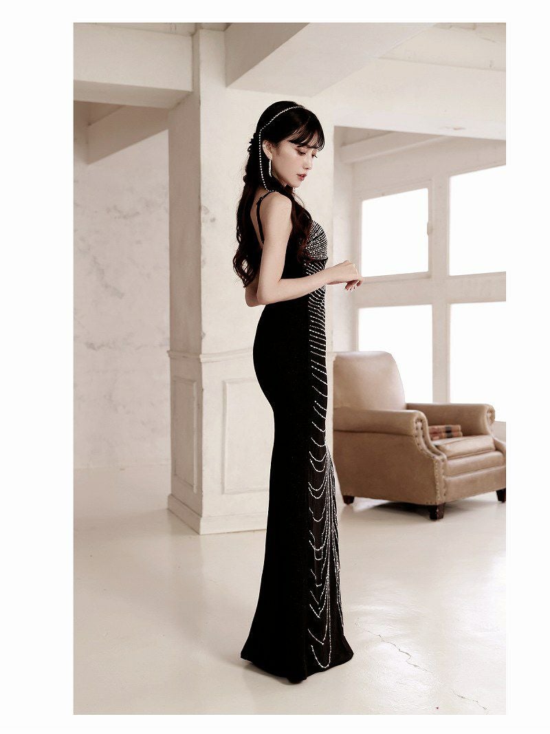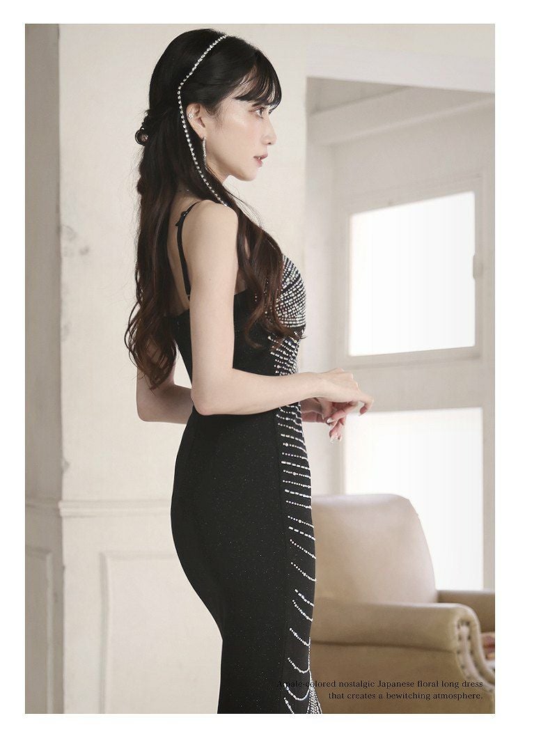 インポート感たっぷりなゴージャスな黒色ロングドレスが登場。