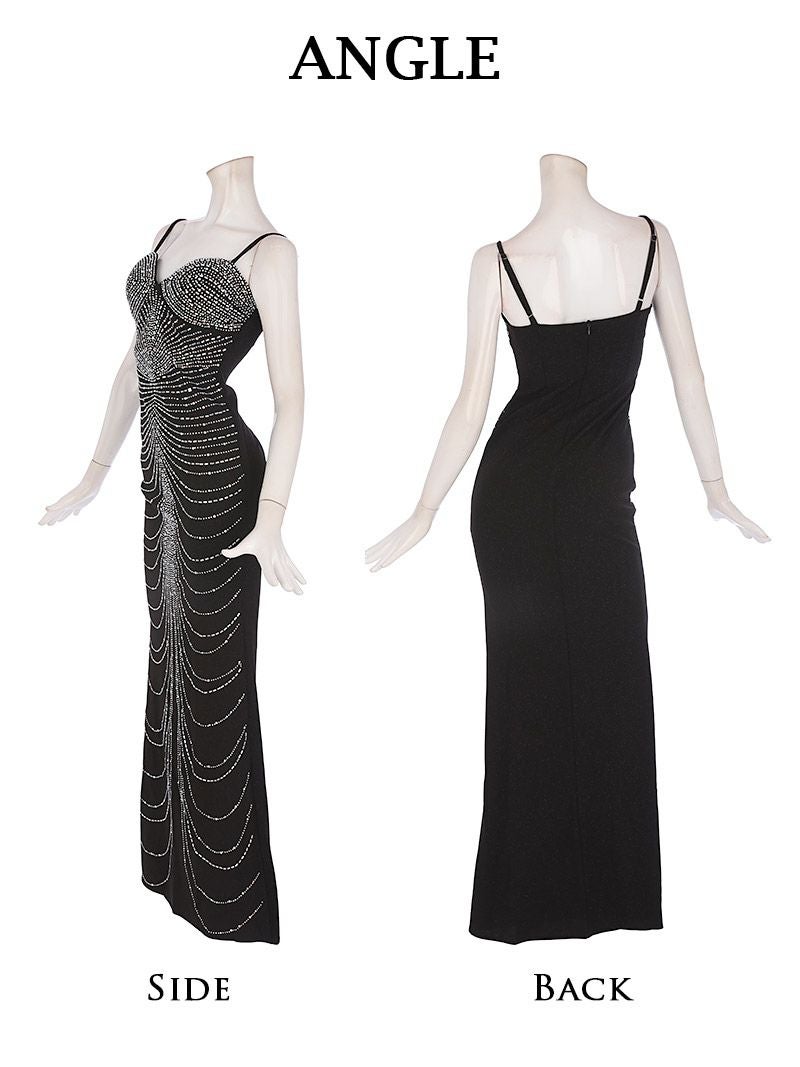 エレガントな色気漂うインポートロングドレス 美シルエビスチェ風ゴージャスパーティーロングドレス 加賀美早紀 着用キャバドレス【BelsiaLUX】(S/M/L)(ブラック)