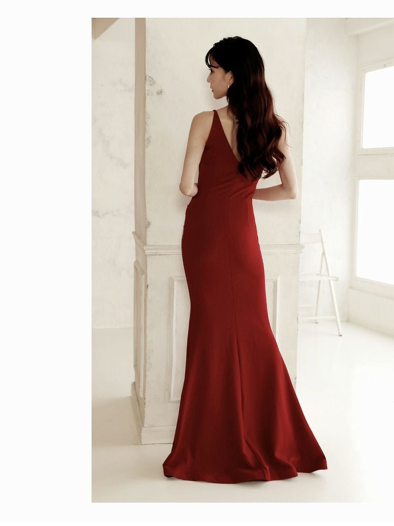 スリット入りのマーメイドシルエットが、動くたびにエレガントな雰囲気をプラスします。