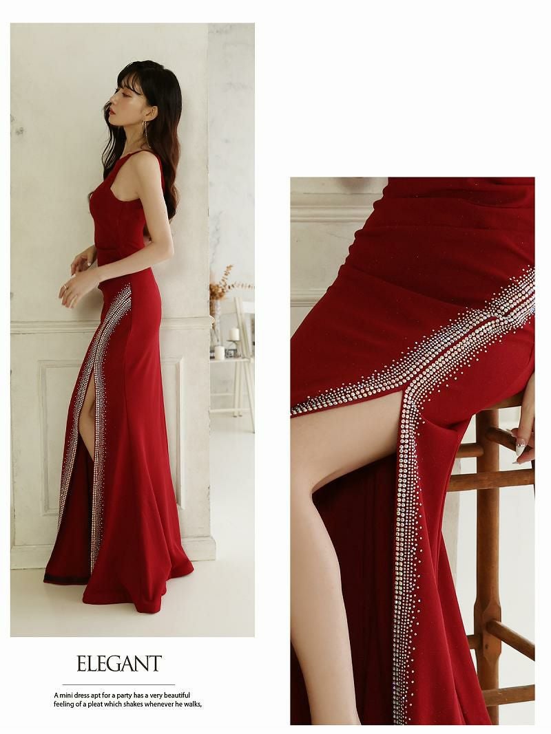 5. 煌きオーロラビジュースリットロングドレス 加賀美早紀 着用キャバドレス【Belsia】(S/M/L)(レッド/ブラック/ブルー) ptpl