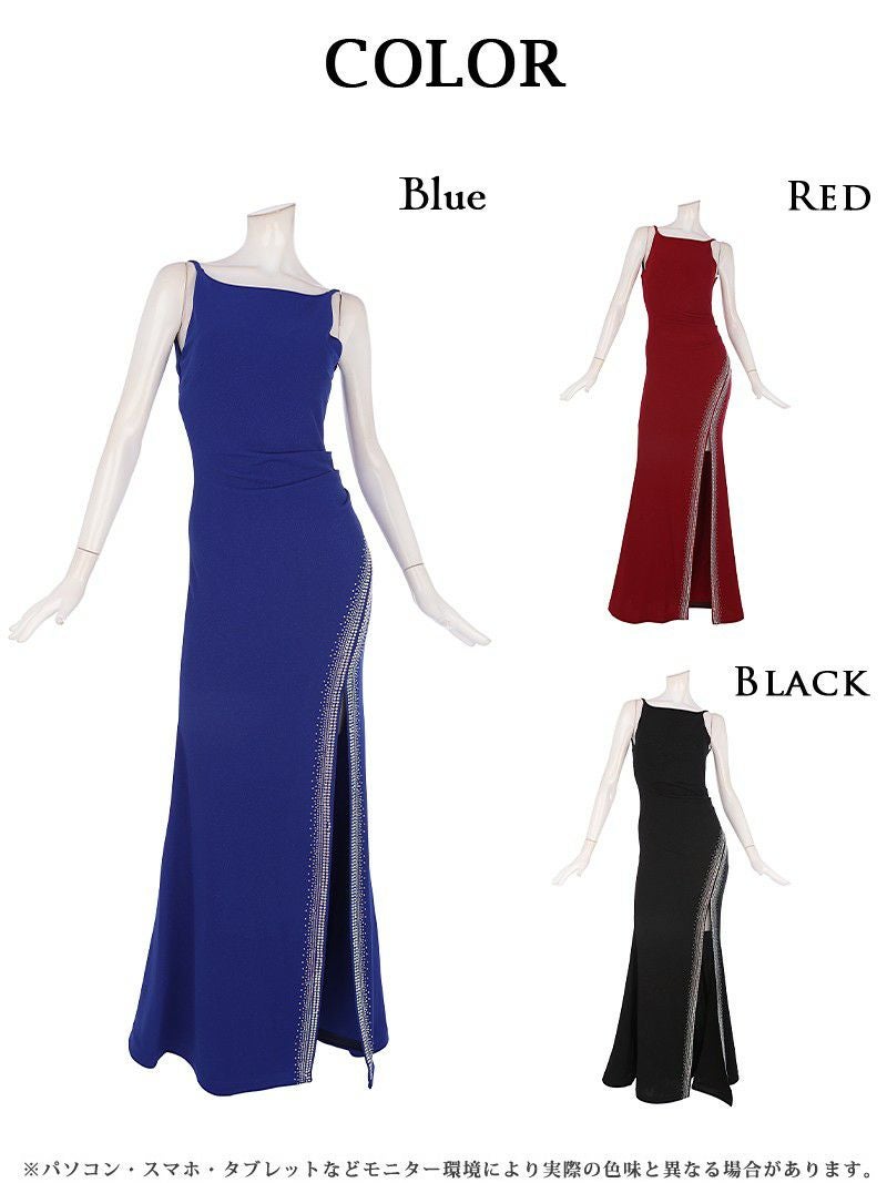 3. 煌きオーロラビジュースリットロングドレス 加賀美早紀 着用キャバドレス【Belsia】(S/M/L)(レッド/ブラック/ブルー) ptpl